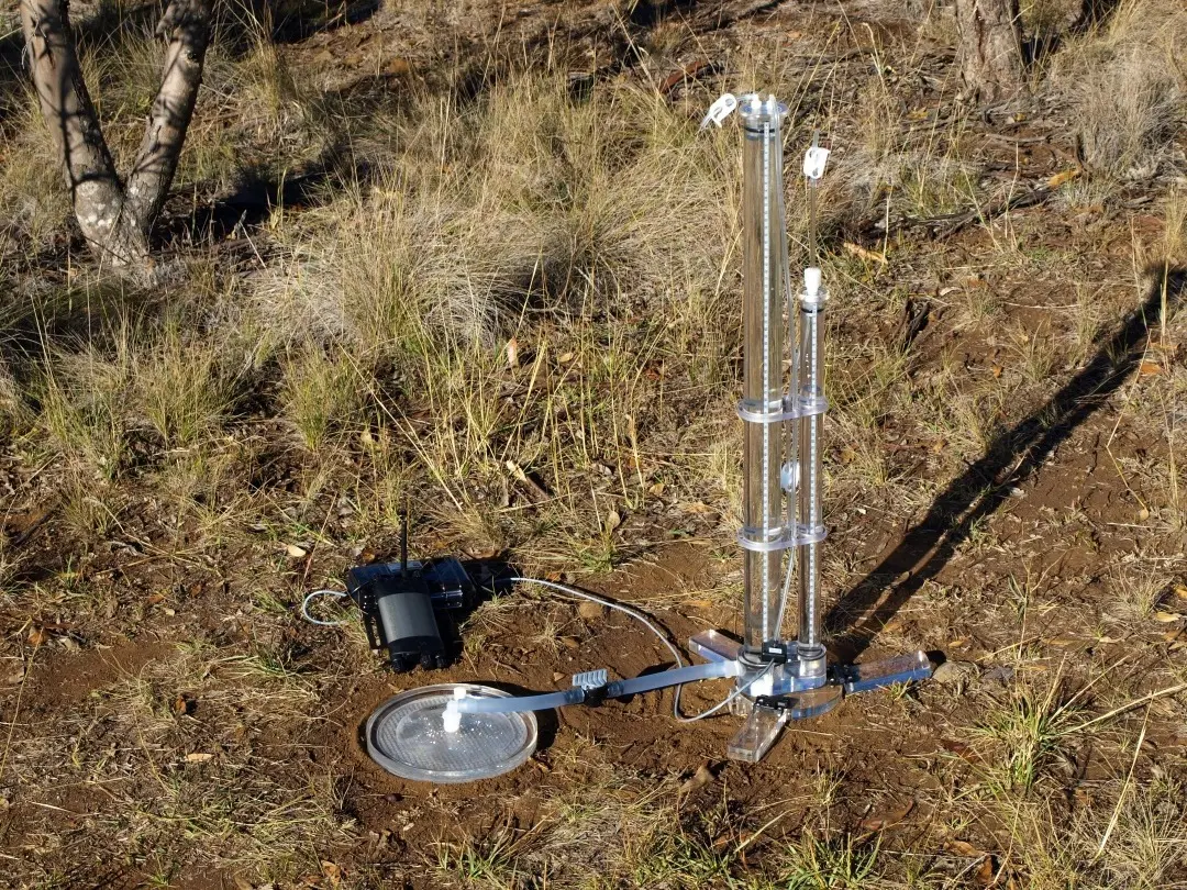 - A Tension Infiltrometer is installed in the field and made ready for measurements as per the recommended methodology.