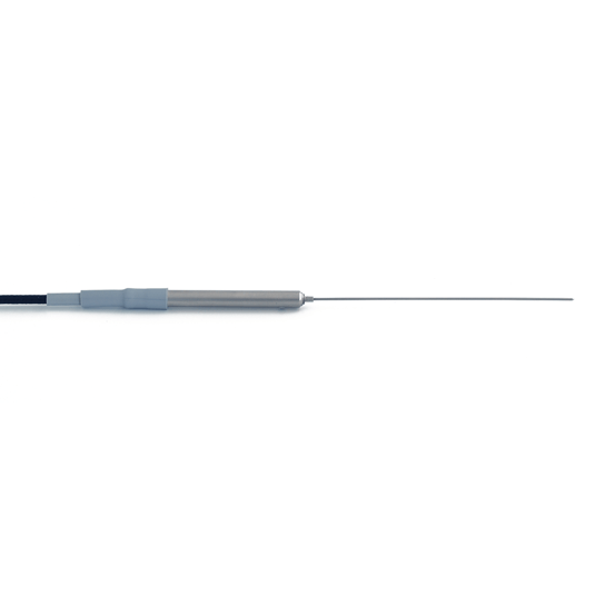 TP02 incorporates 2 thermocouple junctions in the needle producing a voltage output, U, that is proportional to ΔT. The one in the tip is not heated. The main signal is the differential signal between this hot joint at 1/3 of the length and the cold joint at the tip. In this configuration the voltage before starting the measurement is always small, independent of the medium temperature. In designs with only one sensor in the needle, the signal U will appear on top off a larger signal. The two junction design has a superior accuracy when measuring at high and low temperatures. In addition, by having both the cold- and the hot junction in the needle, the sensitivity to temperature changes of the medium is minimised.